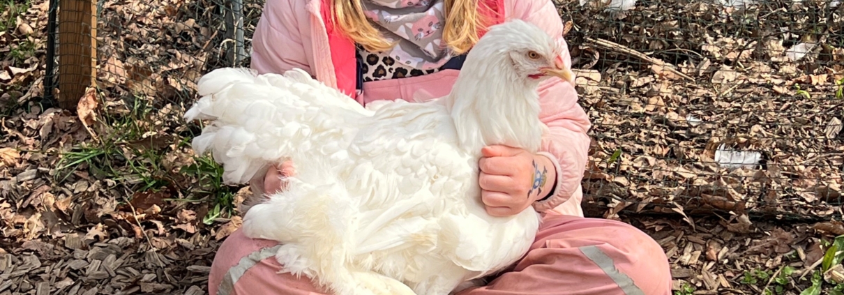 Doch unsere Hühner sind weit mehr als nur hübsche Tiere und Eierlieferanten. Für die Kinder sind sie eine wertvolle Möglichkeit, Natur hautnah zu erleben. So schaffen die Hühner einen ganz direkten Zugang zum Leben selbst: füttern, Wasser nachfüllen, beobachten, Verantwortung übernehmen. Ganz nebenbei wachsen Empathie, Verantwortungsgefühl und Gemeinschaftssinn.